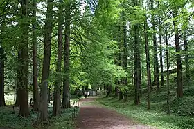 ![]() Sendero entre la arboleda del "Jardín botánico de la Universidad de Osaka". | ||