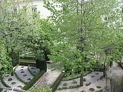 La terraza inferior se ha diseñada para dar cabida a las plantas de acuerdo con el formato de la teoría galénica de los cuatro humores.