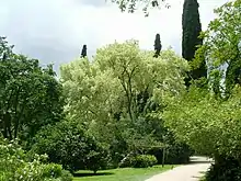 El jardín de Ninfa es un jardín en la zona de Cisterna di Latina, en la provincia de Latina, Italia central, confinando con Norma y Sermoneta. El parque tiene una superficie de 105 hectáreas (260 acres) y es un monumento natural italiano.[1] El jardín paisajístico dentro del parque comprende 8 hectáreas (20 acres) y contiene ruinas medievales, robles, cipreses y álamos, praderas cubiertas de hierba, una amplia gama de plantas exóticas de diversas partes del mundo, numerosos cursos de agua y una gran variedad de rosas trepadoras creciendo sobre los muros de piedra de las ruinas. El sitio está gestionado por la fundación italiana Fondazione Roffredo Caetani.