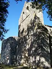 Con una sola nave rectangular separada del coro por un arco que cae sobre algunas columnas. Todo lo que queda de ellos son los extremos (bases y capitales).