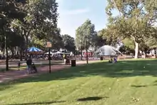 Los emigrantes fueron llegando en oleadas sucesivas extendiéndose por toda América del Norte. Estos, de origen celta, dejaron, en el centro de sus primeras ciudades unos espacios que corresponden al pre-comunal, espacios que se convertirían en parques de las ciudades americanas. Incluso en ciudades como Boston, Chicago o Filadelfia las calles fueron concebidas como parques llenas de árboles. Los jardines particulares están rodeados de césped sin barreras que limiten su entrada.