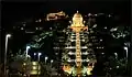 - Vista nocturna de los jardines y el mausoleo del Bab desde la avenida a pie del Monte Carmelo
