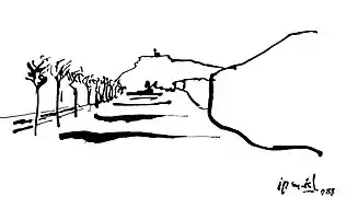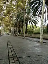 Un paseo con doble hilera de "Plátanos" enlaza visualmente el itinerario desde los antiguos Astilleros (Drassanes) con las escalas de Miramar, construidas según proyecto de Jean Claude Nicolas Forestier.