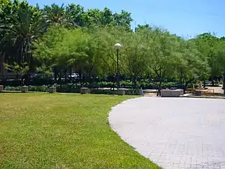Encontramos en estos jardines algunas especies como el Espinillo (Parkinsonia aculeata), el árbol del amor (Cercis siliquastrum), la acacia (Robinia pseudoacacia) y algunas palmeras como la datilera, entre otros especies como el árbol de la lana (Ceiba speciosa) y el palo borracho blanco (Ceiba insignis).[1]