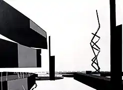 - Detalle escultura "Escala Roja" del proyecto de 1991