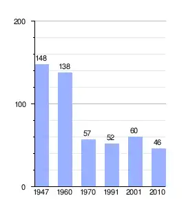 Gráfica de evolución demográfica de Jarilla[1] entre 1947 y 2010 |