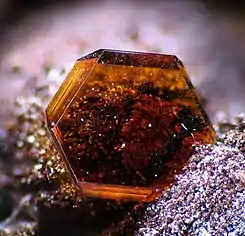 ![]() Microcristal de jarosita.Socavón Santa Bárbara. Cuevas del Almanzora (Almería). Foto y col. Christian Rewitzer. | ||