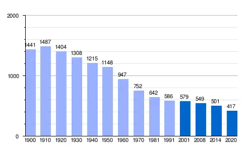 Población de hecho (1900-1991) según los censos de población del INE. Población de derecho (2001 en adelante) según el padrón municipal del INE. |