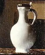 - Típica jarra centroeuropea con tapa, pintada por Vermeer, detalle en A Lady at the Virginals with a Gentleman (1665). Palacio de Buckingham.