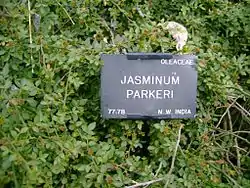 - «Jasminum parkeri». World Checklist of Selected Plant Families. Consultado el 4 de diciembre de 2012.