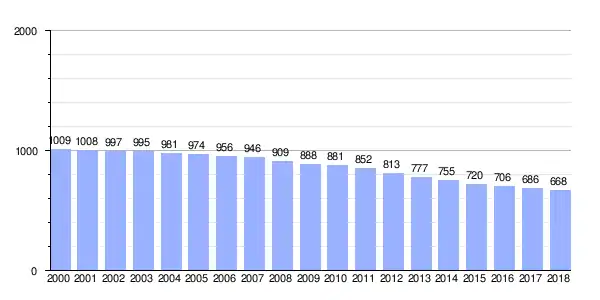 Gráfica de evolución demográfica de Xaviña (aldea) entre 2000 y 2018 |