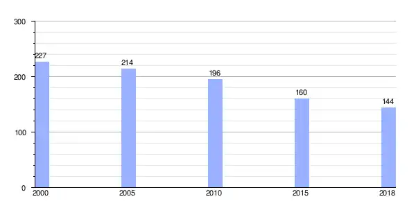 Gráfica de evolución demográfica de Javiña (parroquia) entre 2000 y 2018 |
