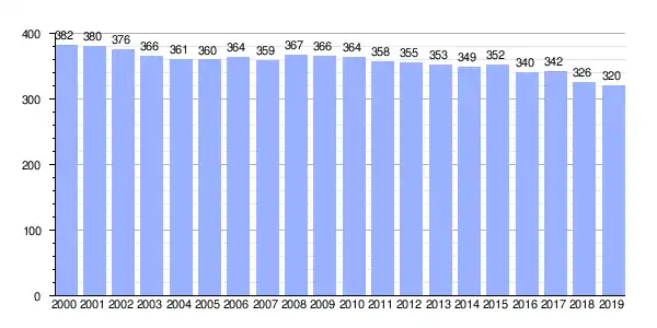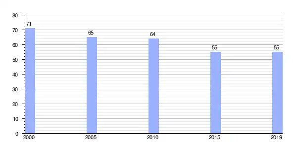 Gráfica de evolución demográfica de Javiña (parroquia) entre 2000 y 2019 |