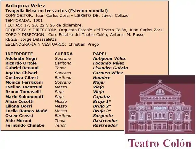Estreno de la ópera Antígona Vélez en el Teatro Colón de Buenos Aires (1991)