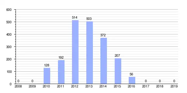 Gráfica de evolución de Deuda viva del Ayuntamiento de Jayena entre 2008 y 2019 |
