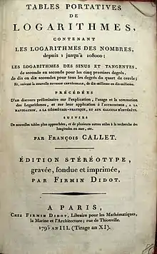Portada de las tablas de logaritmos de Jean François Callet de 1803