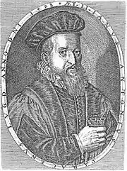 ![]() Grabado del autor, en el libro Opera Dioscoridis, graece et latine, cum scholiis, 1598 | ||
