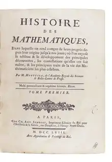 Jean-Étienne Montucla (5 de septiembre de 1725 Lyons - 18 de diciembre de 1799) fue un matemático francés conocido por haber elaborado una historia de las matemáticas en varios tomos.