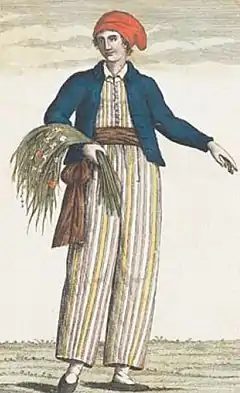![]() Jeanne Baret, vestida de marinero, según un retrato de 1817, posterior a su muerte. | ||