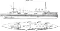 2 cañones de 194/40 mm Modelo 1893 14 cañones de 138/45 mm Modelo 1893 16 cañones de 47 mm 6 cañones de 37 mm 2 tubos lanzatorpedos de 450 mm | |