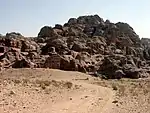 La montaña tiene más de mil metros de altura y una escalera de roca serpentea desde la cima hasta el valle; el valle en el que se encuentra Petra se conoce como Wadi Musa, que significa valle de Moisés. A la entrada del Wadi Musa está Ain Musa, la primavera de Moisés; el cronista árabe Numairi del siglo XIII declaró que Ain Musa es idéntico a Meribah, el lugar donde Moisés descubrió agua al golpear la roca con su bastón.