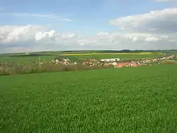 Se encuentra ubicada al noroeste de la región y de Praga, a poca distancia al norte del río Berounka —un afluente izquierdo del río Moldava—, y cerca de la frontera con la región de Ústí nad Labem.[1]