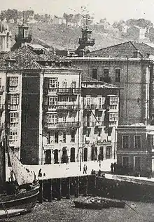 Fue en este edificio, en lo que se denominaba "escritorio", ubicado en la entreplanta, donde se encontraba la sede la sociedad establecida por Jeronimo Roiz de la Parra desde donde atendía sus diferentes negocios de naviero y comerciante. En la primera planta se encontraba su vivienda, en la que llegó a vivir con su hijo Gerardo y la mujer de éste Carmen del Campo, mientras que en la superior residía su hija Ana con su marido Federico de la Viesca, Marqués de Viesca de la Sierra y sus hijos[8]