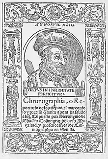 Su primera obra publicada (en 1548) y también la de mayor difusión se titula Chronographia o reportorio de tiempos ("Cronología o repertorio de los tiempos"). En 40 años se realizaron doce ediciones de la misma con privilegio real, e incluso después de su muerte se publicó durante otros 10 años más por autorización expresa del rey Felipe II.[4]
