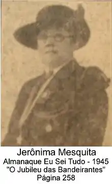 Jerônima Mesquita (Leopoldina, 30 de abril de 1880 — 11 de diciembre de 1972) fue una enfermera, líder feminista brasileña, y fundadora del Movimento Bandeirante do Brasil. En homenaje suyo el día de su nacimiento,[1] 30 de abril se celebra en el Brasil, el Día Nacional de la Mujer.[2]