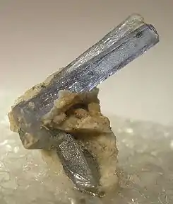 Suele encontrarse asociado a otros minerales como: albita, turmalina, cuarzo, ortoclasa o yeso.