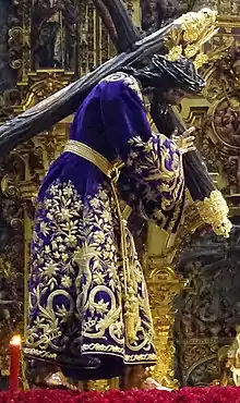 Jesús de la Pasión, como imagen pensada para vestir, posee un excelente ajuar de túnicas. La más antigua que se conserva es la de los Cuernos de la Abundancia, obra de 1845 del bordador Manuel María Ariza.[10]