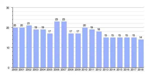 Gráfica de evolución demográfica de Jesta entre 2000 y 2018 |