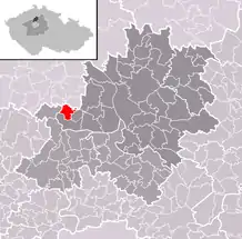 Se encuentra ubicada al norte de la región y de Praga, cerca de la confluencia de los ríos Elba y Moldava, y de la frontera con las regiones de Ústí nad Labem y Liberec.[1]