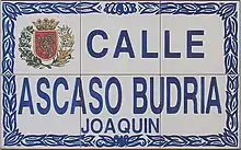 Por decisión del Ayuntamiento de Zaragoza, en cumplimiento de la Ley de Memoria Histórica de España, el 17 de febrero de 2009,[4] el barrio de Torrero de Zaragoza tiene una calle con su nombre, en sustitución del de "Cinco de Noviembre", nombrada así anteriormente en memoria de las víctimas del bombardeo republicano al arsenal o depósito de armas del barrio.[5]