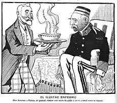 ![]() Caricaturizado por «Mechachis» (Madrid Cómico, 1889) | ||