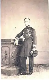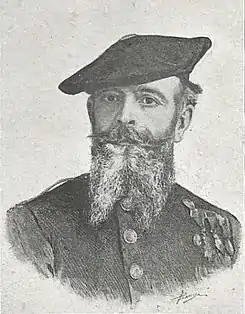 En febrero de 1873, al proclamarse la Primera República, quedó en situación de reemplazo y se fue a Pamplona junto a su familia. Debido tanto a sus ideas carlistas, como a una brutal agresión de la que fue víctima su octogenario padre por la partida de la porra,[4] salió con su hermano Enrique —oficial como él— para incorporarse al Ejército carlista, donde ya se encontraba su cuñado, el coronel de Caballería Justo Sanjurjo, que murió en la batalla de Udave contra la columna Castañón.[2]