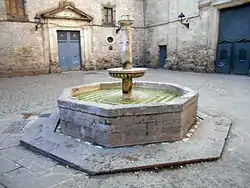 En 1962 diseñó la fuente de la plaza de San Felipe Neri, formada por una taza octogonal, sobre la que se elevaba una columna de unos tres metros de altura, con una taza circular de menor tamaño en su parte inferior, y coronada por una estatua de san Severo, obra de Josep Miret. Esta figura fue robada al año siguiente y sustituida por una estatuilla del mismo autor conocida como El estudiante, igualmente sustraída a finales de los años 1970. Actualmente solo queda el cuerpo de la fuente.[8]