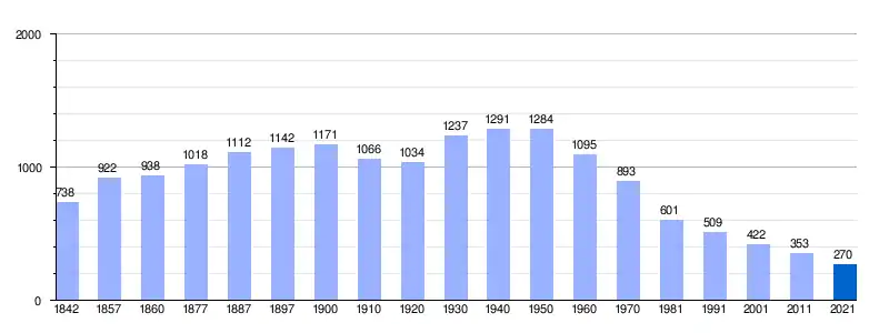 Población de derecho (1842-1991, excepto 1857 y 1860 que es población de hecho) o población residente (2001-2011) según los Censos de Población desde 1842. Población según el padrón municipal de 2021 del INE. |