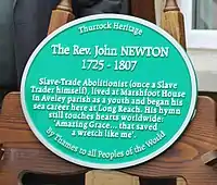 Newton se hizo a la mar a una edad temprana y trabajó en barcos de esclavos en el comercio de esclavos durante varios años. En 1745, él mismo se convirtió en esclavo de la princesa Peye, una mujer del pueblo Sherbro . Fue rescatado, devuelto al mar y al comercio, convirtiéndose en Capitán de varios barcos esclavistas. Después de retirarse de la navegación marítima activa, continuó invirtiendo en el comercio de esclavos. Algunos años después de experimentar una conversión al cristianismo , Newton más tarde renunció a su oficio y se convirtió en un destacado partidario del abolicionismo . Ahora un evangélico, fue ordenado como clérigo de la Iglesia de Inglaterra y se desempeñó como párroco en Olney, Buckinghamshire., durante dos décadas. También escribió himnos, incluyendo " Amazing Grace " y " Se hablan cosas gloriosas de ti ".