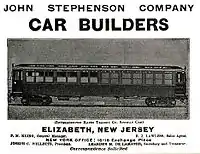 La empresa fue fundada por John Stephenson en 1831.[1] John Stephenson inventó el primer tranvía que corría sobre rieles y lo construyó en 1832 para el Ferrocarril de Nueva York y Harlem. Una reorganización en 1867 incluyó el acortamiento del nombre de la empresa a John Stephenson Company. En la última parte del siglo XIX, la empresa fue un importante constructor de tranvías, construyendo unos 25 000 coches solo en el período 1876-1891, incluidos los destinados a la exportación.[1]