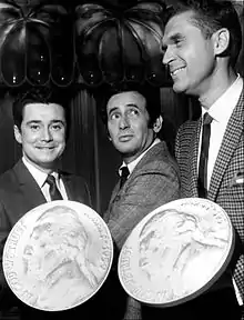 ![]() Mann, a la derecha, con Regis Philbin y Joey Bishop en 1969. | ||