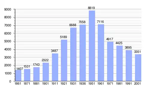 Gráfica de evolución demográfica de Jolanda di Savoia entre 1861 y 2001 |