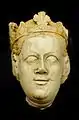- Cabeza real yacente, en alabastro, fragmento procedente de la iglesia abacial de Poblet; mediados del siglo XIV.