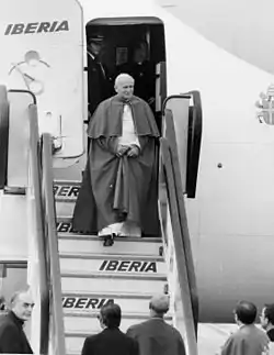 ![]() Juan Pablo II en el avión llegando a la Jornada | |||||