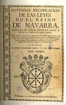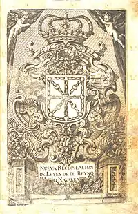Las Cortes de Navarra en 1702 habían acordado reunir en un sola obra toda la legislación promulgada desde 1512 —fecha de la conquista por Castilla— hasta 1716, la última asamblea del Reino cuya legislación se llegó a tiempo de incluir. El trabajo de recopilación de las leyes del Reino se encomendó en 1716, en segunda instancia, al abogado Joaquín Elizondo,[9] quien lo entregó en 1724. El manuscrito ocupaba 1.800 pliegos[10] que se transformarían en dos volúmenes, de tamaño folio, de unas mil páginas cada uno.[11]