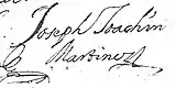 Se desconoce el lugar de origen de José Joaquín Martínez. Es probable que procediera de La Rioja y que se dedicara a la imprenta ambulante con un taller de su propiedad. Se tiene constancia documental de que en 1713 ya trabajaba como impresor y de que dos años más tarde se encontraba en Viana donde, con probabilidad, fue contratado por Francisco Picart para ayudarle en la composición e impresión del tomo quinto de los Anales del Reino de Navarra. Picart había trasladado su taller desde Pamplona a esta localidad para facilitar la corrección de pruebas a su autor, Francisco de Alesón, donde residió con carácter temporal.