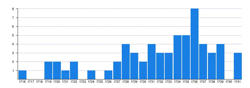 Producción de libros de la imprenta de José Joaquín Martínez (1716-1741)[7] |