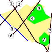 Mapa esquemático que muestra actuales puntos de referencia en los terrenos de la antigua hacienda el Salitre: |