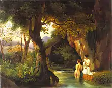 Las primeras obras de su predilección fueron las pinturas de ruinas, crepúsculos y bosques de cuidada composición, plenos de sentimentalismo y drama.