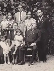 - Georgina Peinador Porrúa nace en Andujar el 3 de enero de 1903 y muere en Valencia el 4 de noviembre de 1974.[18] Hija de Enrique Peinador Linés[19] (1880-1940) y Georgina Porrúa Moreno (1876-1941). Nieta por parte de padre de Sabino Peinador Vela[20] (1847-1917) y Avelina Linés Lopes (1852-1847) y por parte de madre de José Porrúa Moreno[21] (1852-1912) y Natalia Moreno de Villar (1855-1912). Estudió en Inglaterra y durante los años 20 y hasta la guerra civil, participó de forma habitual en la vida social del Balneario de Mondariz, del que su padre era gerente y su abuelo fundador y donde conoció y se relacionó con lo más granado de la sociedad de la época.[22] Conoció a García-Blanco en el mismo establecimiento termal, ya que este trabajó en el verano de 1926 (y posteriores) en el Instituto de Nutrición que se había montado allí para dar servicio a los clientes. En dicho laboratorio trabajaba junto a Isidro Parga Pondal, que a su vez se casaría con la hermana de Georgina, Avelina, y con el que José María publicaría algún trabajo promovido por el Seminario de Estudios Gallegos.